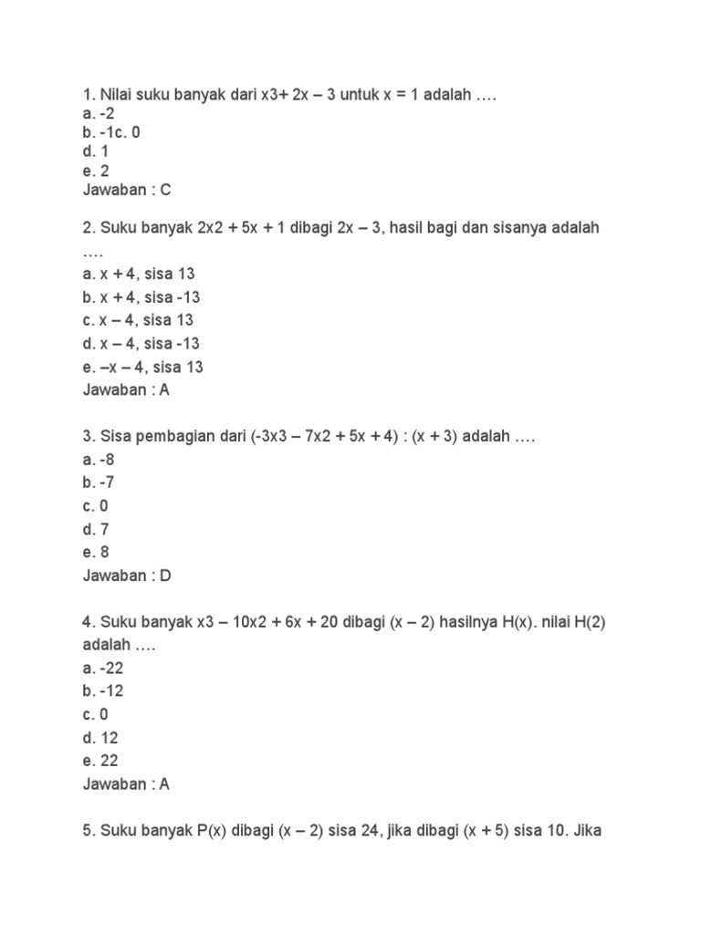 1 diberikan suku banyak f(x) = 3x3 + 2x − 10. Pada kasus ini, 2x 3 merupakan suku yang dimaksud karena 2x 3. Nilai setiap suku banyak berikut ini untuk x yang ditentukan 2 1 2 3. Pengertian suku banyak biasa di sebut dengan polinom.