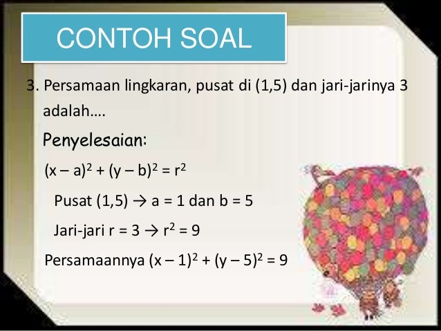 Persamaan Lingkaran Kelas 11 Ppt. Seribupena matematika untuk sma/ma kelas xi. Contoh soal tentukan persamaan lingkaran yang :
