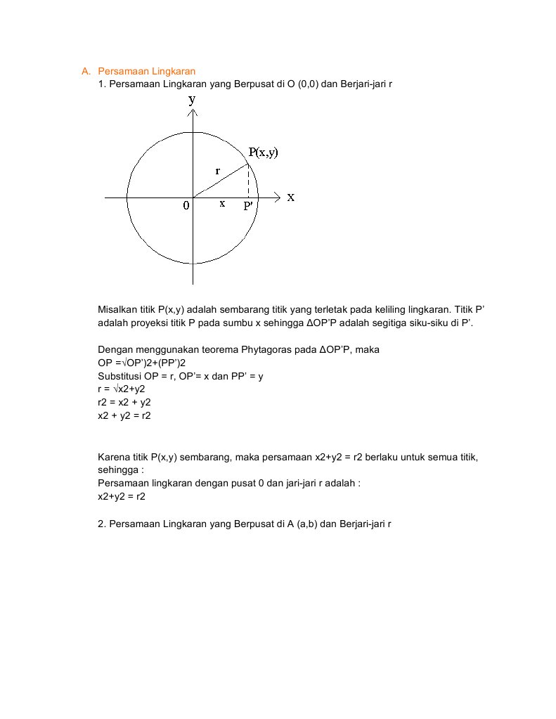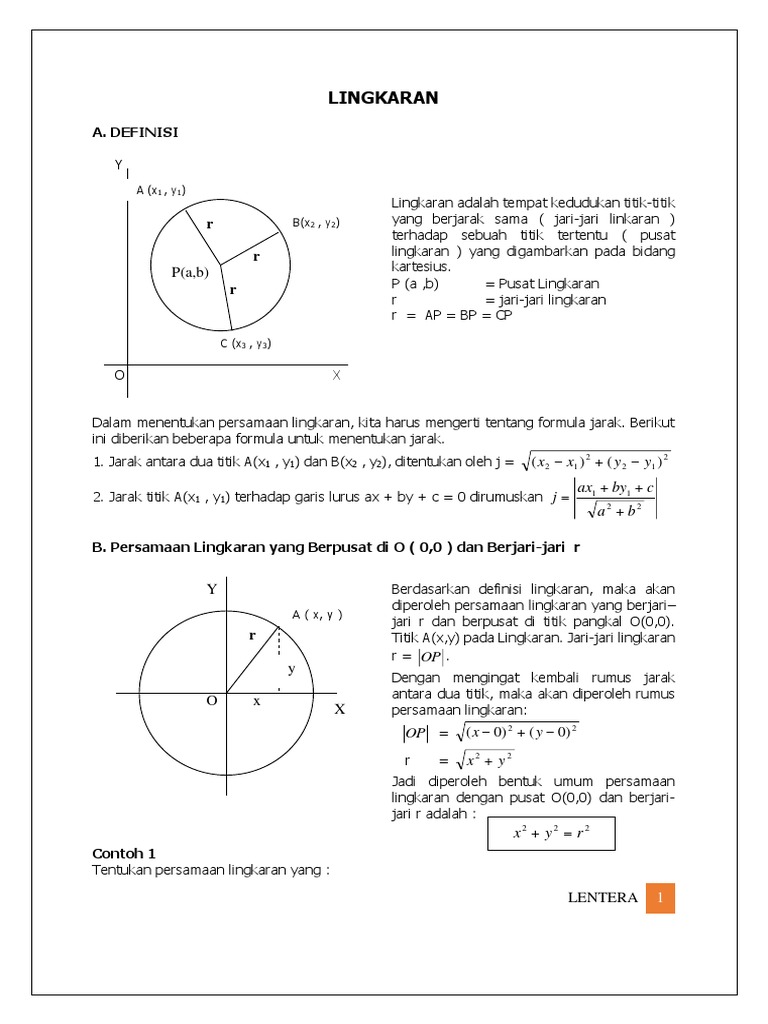 B Persamaan Lingkaran from imgv2-2-f.scribdassets.com Di sini, kamu akan belajar tentang lingkaran dengan pusat (0,0) melalui video yang dibawakan oleh bapak anton wardaya. Selain itu, kamu juga akan mendapatkan latihan soal interaktif dalam 3 tingkat kesulitan (mudah. Demikianlah penjelasan materi dan contoh soal dan pembahasan mengenai persamaan lingkaran.