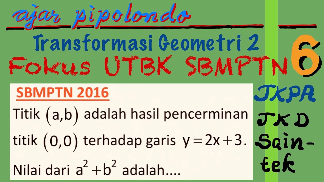 Transformasi Geometri Sbmptn. Untuk lebih jelas silahkan anda simak penjelasan. Lesson 2 of 10 • 6 upvotes • 15:00 mins.