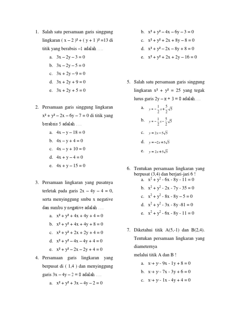 3 diberikan persamaan lingkaran l ≡ x2 + y2 = 25. Saran dari saya, pilihlah persamaan dengan angka yang kecil, agar anda tidak pembahasan: Diketahui 3 kota yaitu a, b, dan c. Karena persamaan masih dalam bentuk kuadrat, akan lebih mudah jika ini diuraikan terlebih dahulu, sehingga akan diperoleh, $ l_1 :