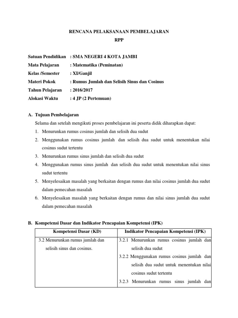 Rumus Jumlah Dan Selisih Sinus Dan Cosinus Pdf. Rumus jumlah dan selisih sinus dan cosinus. Tentukan nilai dari sin 105° + sin 15° =.?