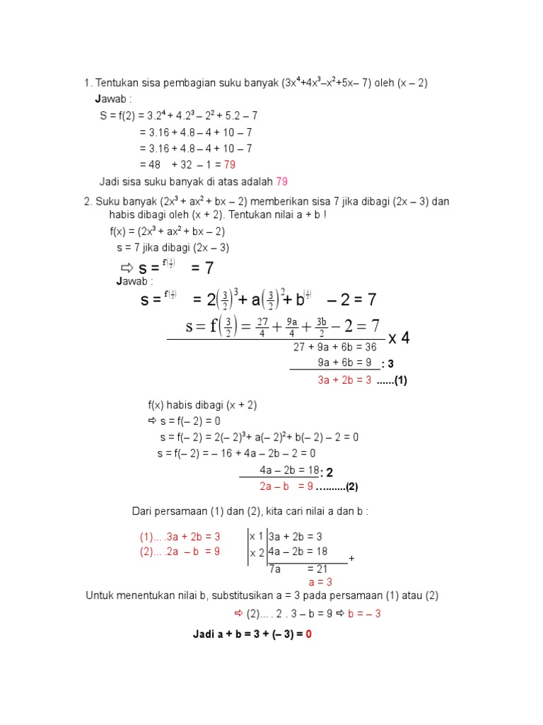 Sisa Suku Banyak Jika Dibagi X 2 Adalah 31 Mencari Nilai Koefisien P Yang Belum Diketahui Pada Persamaan Matematika Sma from 4.bp.blogspot.com 2x + 1 dan x + 2 d. Pada pembahasan kali ini kita membahas makalah materi mengenai suku banyak atau polinomial lengkap dengan contoh soalnya. Jika $h(x)=f(x)g soal utul ugm mat ipa 2017 kode 713.