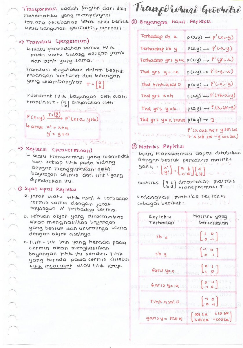 Ringkasan transformasi geometri 2 | matematika kelas 11, utbk tkpa dan saintek #pejuangutbksbmptn. Objek tersebut bisa saja titik, garis dan bangun. Apkah sudah pernah dengar gak tentang komposisi transformasi geometri? Transformasi geometri adalah salah satu materi matematika bidang geometri yang mempelajari perubahan posisi dan ukuran benda dengan menggunakan ada 5 macam transformasi geometri yang dipelajari di tingkat sma, yaitu translasi (pergeseran), refleksi (pencerminan), rotasi (perputaran).